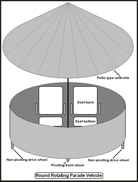 About 25 years ago, I had this crazy idea of building a parade vehicle that was circular and could rotate in circles as well as travel forward and backward.