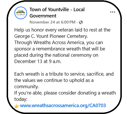 I know that our mayor coordinated the wreath placements and could probably answer that question. But I didn’t want to ask the question and draw attention to it, and maybe have it removed as a mistake or as the unauthorized action of a volunteer.