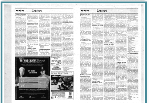 For most of those years, the town reciprocated and supported the Sun by placing advertisements and public notices in the newspaper. It was a symbiotic relationship, but those stopped too. One of my readers noticed that and asked if the town was trying to control the information that was shared with the locals. I didn’t have an answer and could not explain why the town stopped supporting the Sun this way, while budgeting over $300,000 to the Chamber of Commerce to support other businesses – many of which aren’t even based in Yountville and do little to support the locals – in IMHO.