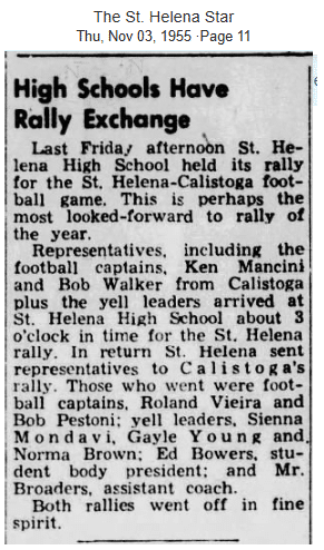 Calistoga and St. Helena High Schools were intense sports rivals competing for upvalley bragging rights up through the 1960s.