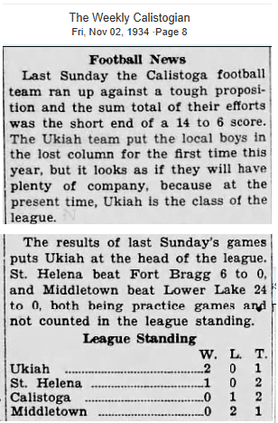 Jumping ahead to November 1934, Ukiah was considered the “class” of the four-school league: