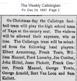 Calistoga vs. Napa on Christmas Day, 1897: