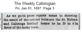 Calistoga beat St. Helena on New Year’s Day, 1897.