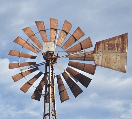 Design and features: These windmills were designed to pump water efficiently and featured a patented friction clutch and, in later models, durable steel construction rather than wood.
