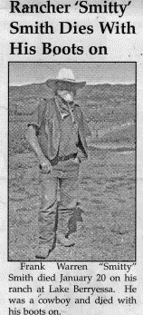 “I knew Smitty and some of his antics. Besides running cattle, he made money with firewood, that with the help of Jesus Figueroa got harvested on the hillsides where his cattle grazed. Seeing his old rusted-out diesel truck coming down Washington Street with this long-haired, bearded, buffed-out wild man at the wheel was a true Yountville experience.