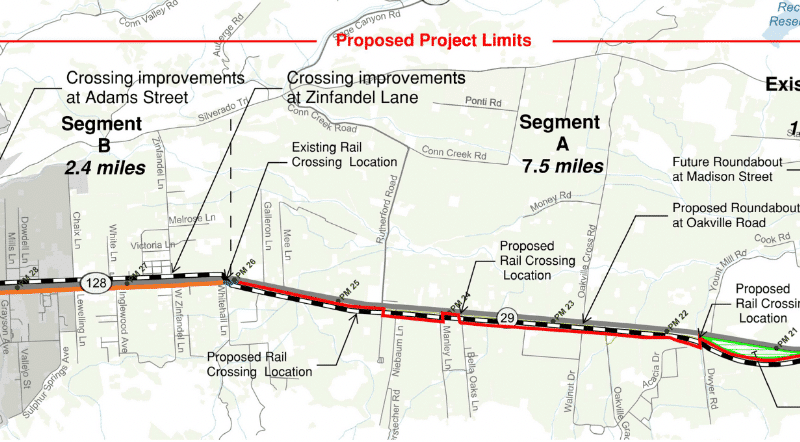 The project is anticipated to include a Vista Point parking lot along the west side of Highway 29, across from the north end of Washington Street.